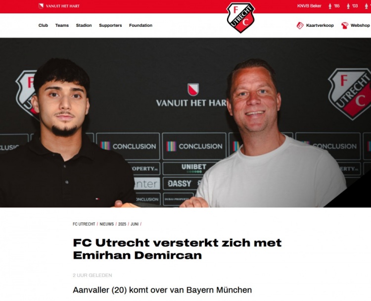 德米尔詹从拜仁慕尼黑自由转会加盟乌得勒支,这位20岁的土耳其边锋签约至2028年夏天,并附带一年续约选项。