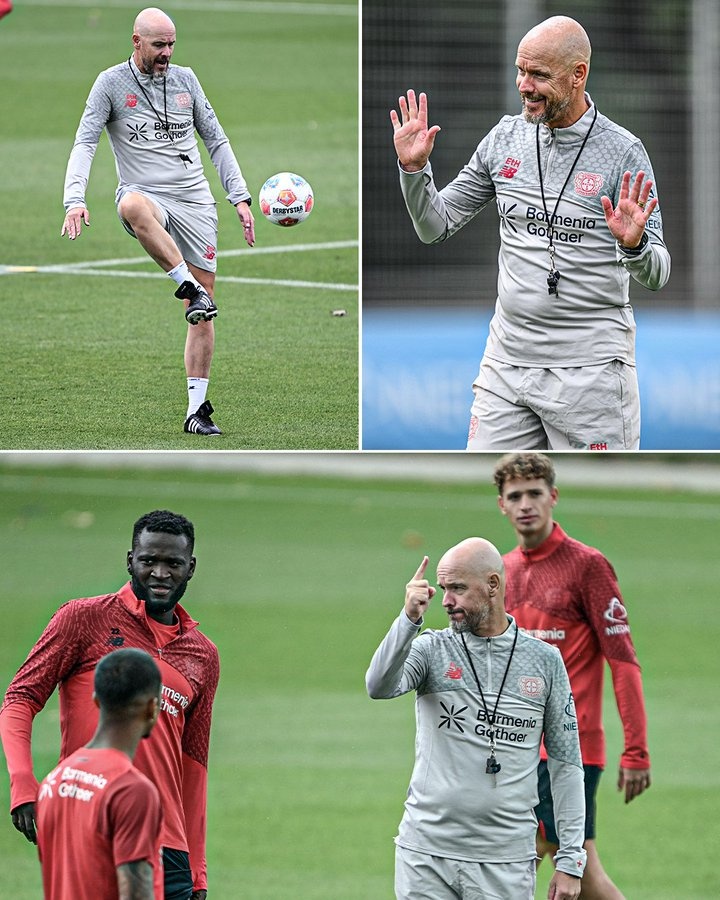 7月8日讯 ESPN晒照,滕哈赫今天带领勒沃库森开始首次训练。滕哈赫在今夏被任命为勒沃库森主帅,接替哈维-阿隆索的帅位,今天,这位前曼联教头带队开始首次训练。