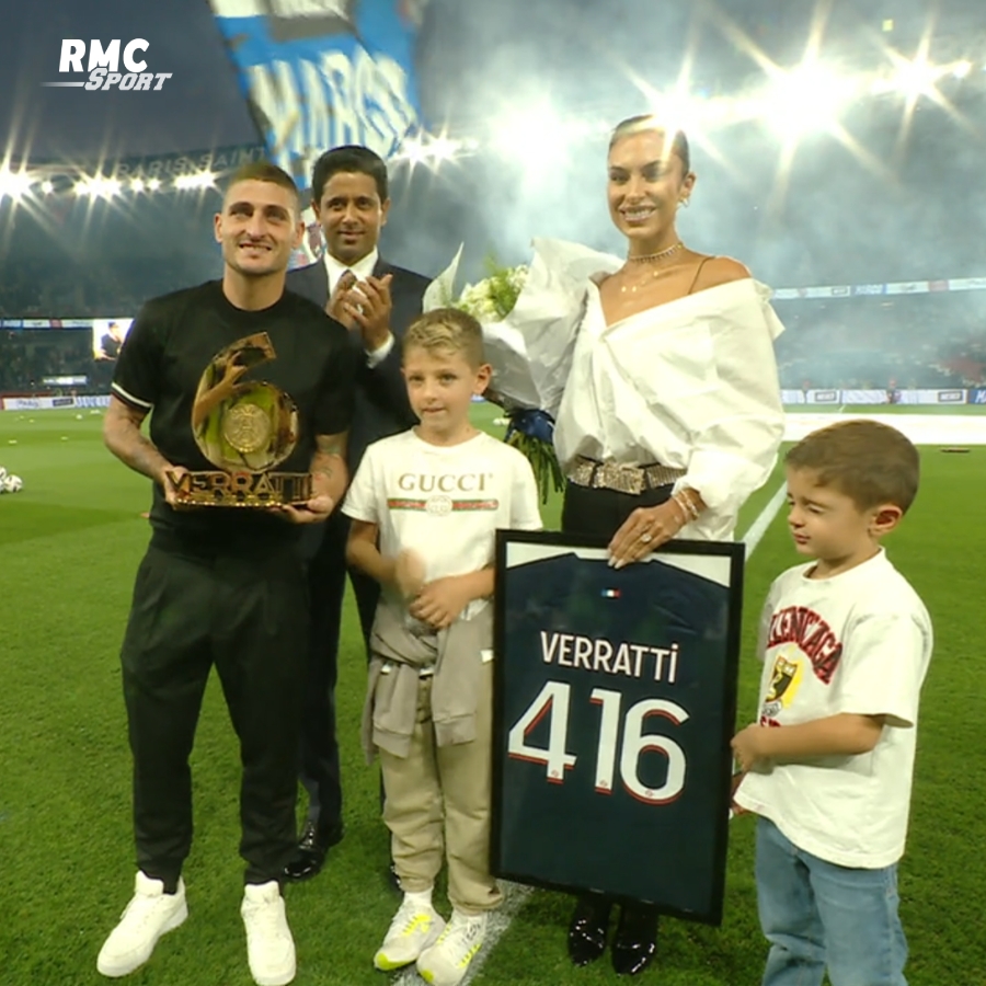 纳赛尔将其赠送了一座特质的奖杯,形状为数字6,这也是维拉蒂在巴黎的球衣号码。维拉蒂还获赠了一件印有416和自己姓名的巴黎球衣,这也是维拉蒂为巴黎的总出场数。