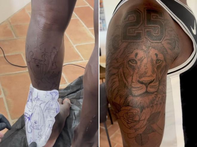 他在自己左小腿纹上了上赛季收获的五座奖杯图案,并在欧冠奖杯上方加了一颗星。