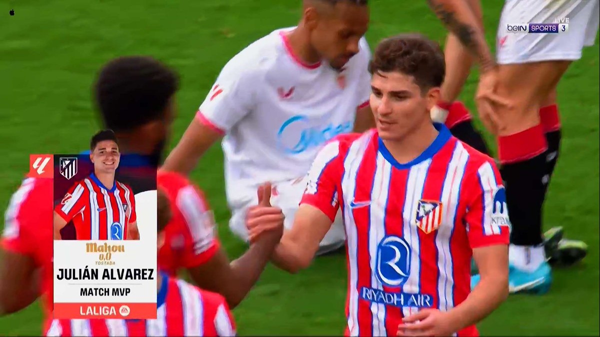 点射破门,西甲官方:阿尔瓦雷斯当选马竞21塞维利亚全场最佳