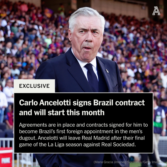 多家媒体:安切洛蒂已被任命为巴西新任主帅,5月26日正式上任