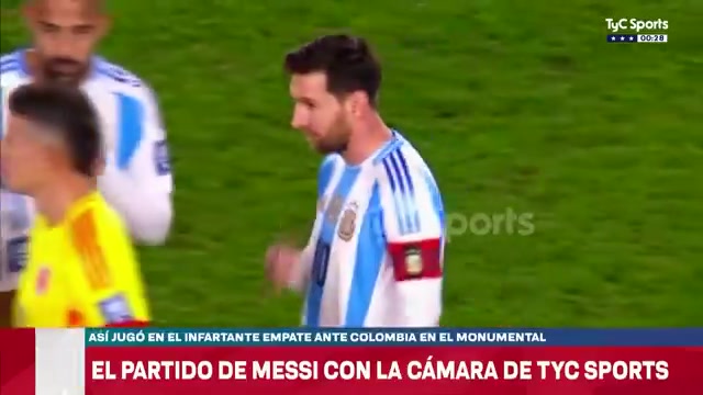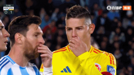 06月11日讯 世预赛阿根廷1-1哥伦比亚,梅西与J罗在本场比赛有一次亲密交流。