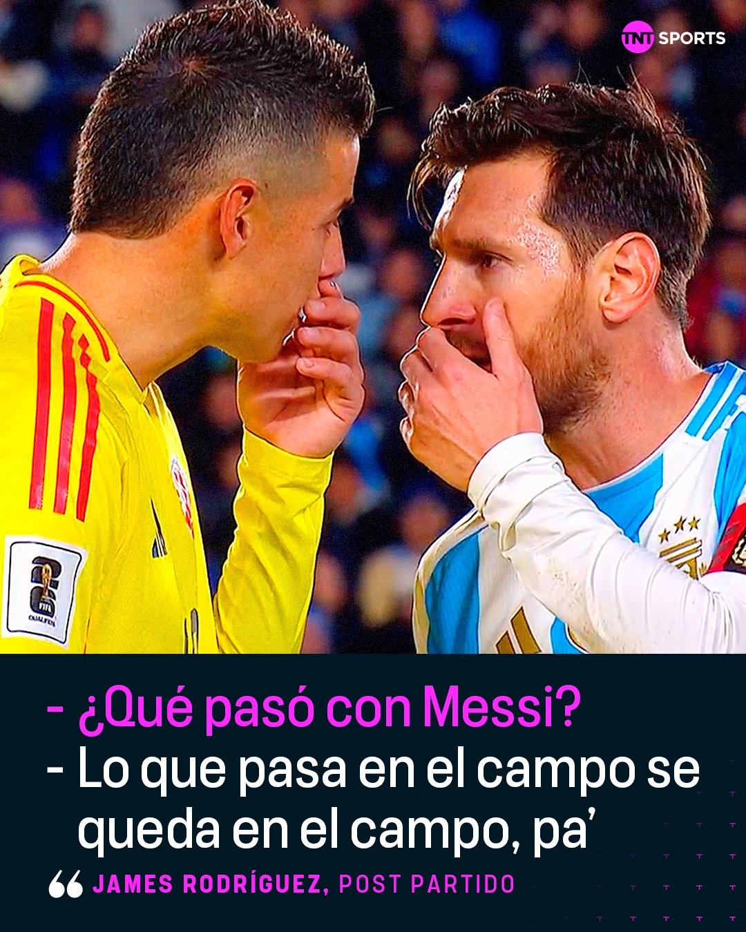 06月11日讯 世预赛阿根廷1-1哥伦比亚,梅西与J罗在本场比赛有一次亲密交流。据tyc透露,梅西说的话是:你说他们在决赛中帮助我们,你话太多了。