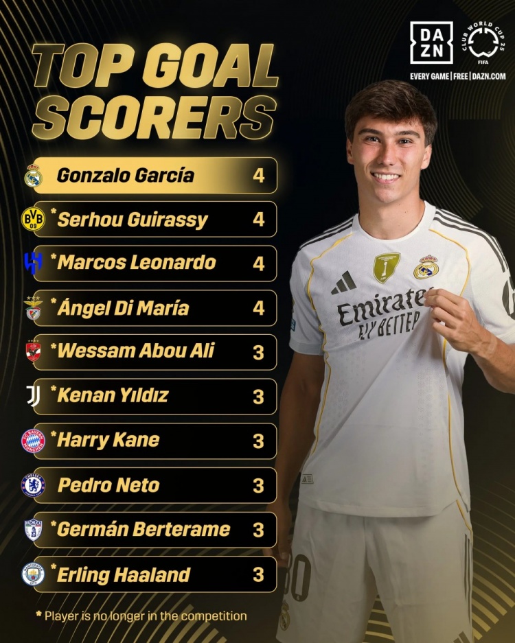 恩里克还在为贡萨洛-拉莫斯的状态发愁,皇马的正印中锋已经是枪管滚烫。小组赛面对利雅得新月和萨尔茨堡红牛时完成破门,对阵帕丘卡时送出助攻,淘汰赛对阵尤文图斯和多特蒙德时连续制造进球,贡萨洛-加西亚在5场世俱杯比赛中录得4球1助攻,堪称白衣军团在本次北美之行中的最大收获。