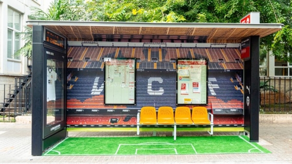 对选定的公交候车亭的四周和顶棚进行了装饰,使这些车站看起来就像梅斯塔利亚球场的看台一样,甚至配备了球场看台上一样的座椅。2023/24赛季瓦伦西亚的球衣也在这些公交亭展出,夜晚时甚至用灯光凸显了新的设计。