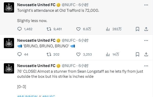 0-3落后时,有曼联球迷陆续提前离场。纽卡官推发文:“今晚老特拉福德的观众为72000人,现在变少了一些。”