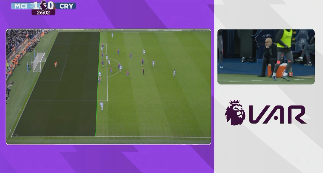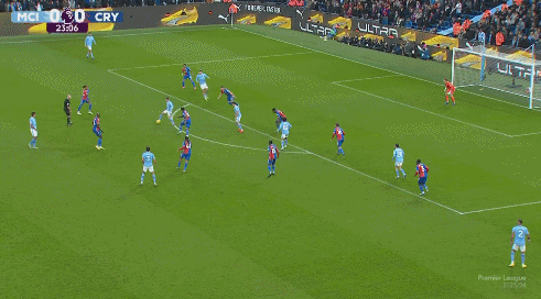 12月16日讯 英超第17轮,曼城vs水晶宫。比赛第24分钟,格拉利什连续3场英超破门,VAR判定进球有效!曼城1-0领先水晶宫!