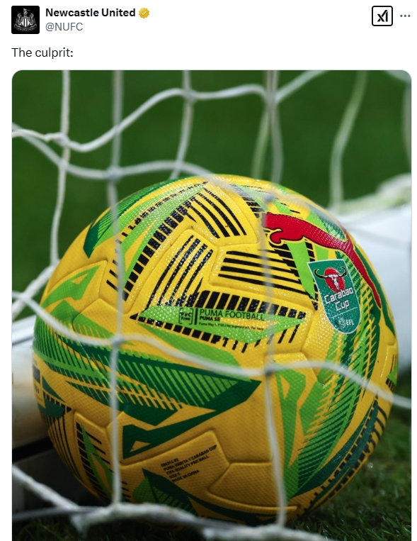 阿尔特塔曾吐槽联赛杯用球,纽卡晒比赛用球调侃:罪魁祸首