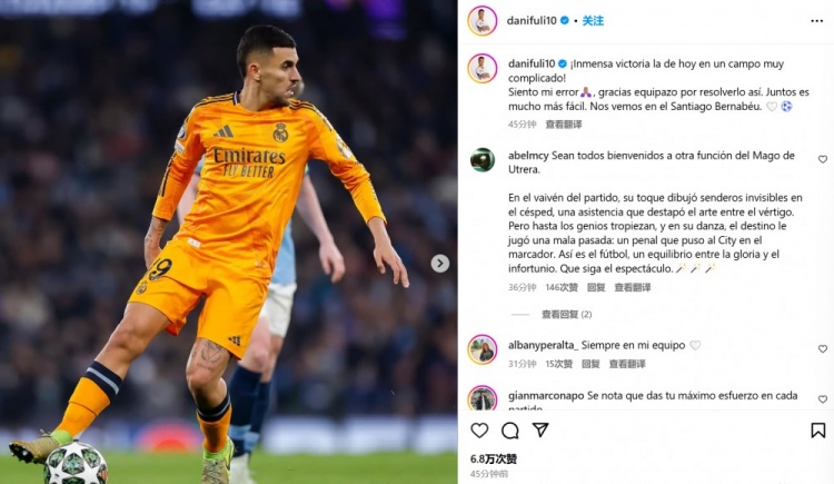 他也在赛后通过社媒晒出自己的比赛照,并配文:“今天在非常艰难的客场取得重大胜利!我为我犯下的错误感到抱歉