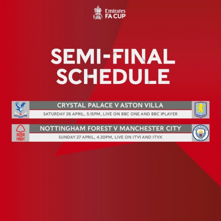 4月4日讯 英足总更新社媒动态,公布足总杯半决赛的比赛时间。