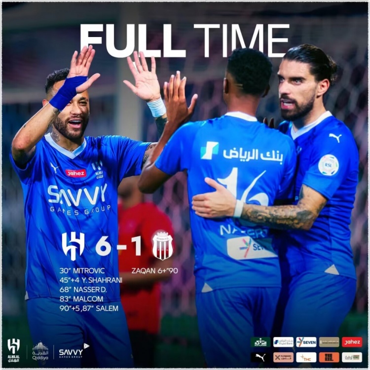 沙特联第6轮,利雅得新月主场迎战利雅得体育,内马尔下半场替补登场迎首秀,策动+助攻+造点,最终利雅得新月6-1利雅得体育,新月联赛4连胜登顶,开局6轮保持不败。
