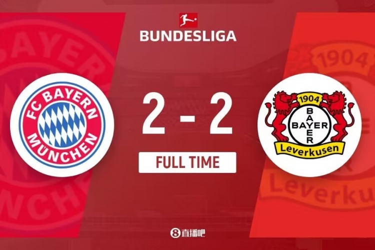德甲第4轮榜首大战,拜仁主场迎战勒沃库森,上半场凯恩破门,格里马尔多任意球世界波扳平,下半场凯恩失单刀,格雷茨卡进球,戴维斯补时送点,帕拉西奥斯点射绝平,最终拜仁2-2勒沃库森,药厂仍居榜首,拜仁净胜球劣势排第二。