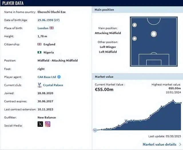 当然,埃泽没有辜负主帅、高管们的信任,在水晶宫效力的169场比赛,他打出40个进球28个助攻的成绩,效率不俗,也慢慢成长为了整个英格兰顶级的指挥官。到这个夏季转会窗,他离队消息满天飞,经纪团队也在努力给他找到登陆豪门的契机。不过埃泽本人却没有被这样消息打乱节奏。