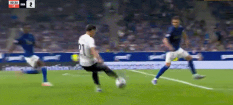 第83分钟,维尼修斯抢断后在禁区前沿分球给姆巴佩,法国前锋一蹴而就,2比0。