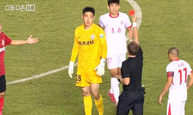 第8分钟,王智峰扑倒兰克尔-泽,被红牌罚下