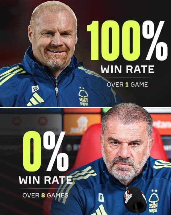 诺丁汉森林本赛季战绩惨不忍睹,也造成了球队教练席上频繁变动。根据统计,诺丁汉森林成为了英超历史上第一支在单赛季前三个月内由三位不同的主教练执教的球队。这一尴尬纪录,浓缩了俱乐部本赛季的混乱局面。球队先是解雇了努诺,随后在9月9日请来了上赛季率领热刺夺得欧联杯的冠军教头波斯特科格鲁。然而这位欧战冠军在诺丁汉森林的执教却成为了一场噩梦。他带领球队征战了8场比赛,战绩是惨不忍睹的2平6负,这使他成为诺丁汉森林队史首位执教前八场未尝胜绩的主教练。波斯特科格鲁的执教最终只持续了39天,也成为英超历史上“最短命”的主帅之一。