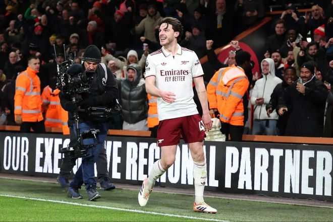 失误后迅速扳平比分,无疑是最好的稳定军心,阿森纳踢得更加从容,因伤缺席榜首大战而获得难得休息机会的赖斯在下半场主宰了比赛——这位阿森纳队史标王先是接厄德高的回敲迎球怒射反超比分,随后又接萨卡的妙传推射锁定胜局。