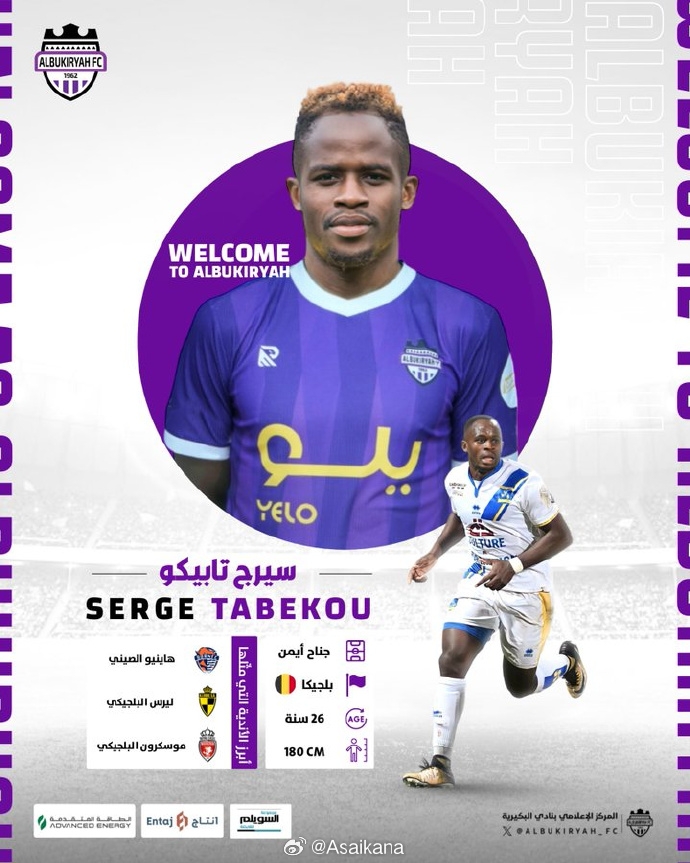 喀麦隆前锋塔贝克离开青岛海牛,加盟沙特甲级联赛(次级联赛)球队布里凯耶(Al-Bukayriyah)。塔贝克今年初来到青岛海牛,为海牛出场了18次,尚无进球。因经纪人纠纷,他在7月28日收到国际足联禁赛半年的罚单。虽然该问题迅速解决并撤销了处罚,但已经超过了转会窗口时间,青岛海牛在转会期关闭前用沙里奇将其更换,他失去了在中国出场的机会。