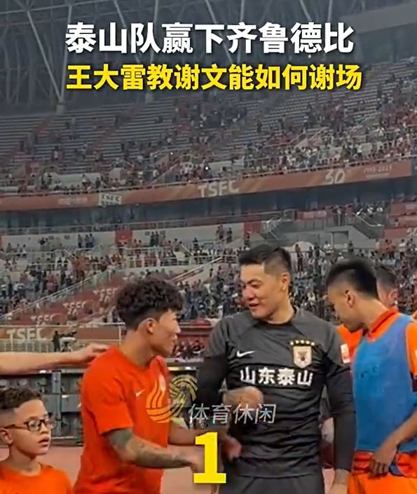 9月16日讯 在昨晚进行的中超第25轮联赛中,山东泰山主场4-2击败青岛队。其中,小将谢文能梅开二度。赛后,王大雷教谢文能如何指挥谢场。作为本场比赛赢球的最大功臣,谢文能“接班