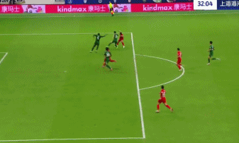 第31分钟,莱昂纳多禁区内横传,回追的吴少聪捅球解围,球打在范双杰的身上反弹,刘若钒领球之后右脚踢在草坪上绊倒,侯森出击扑球不远,维塔尔右脚斜射偏出。